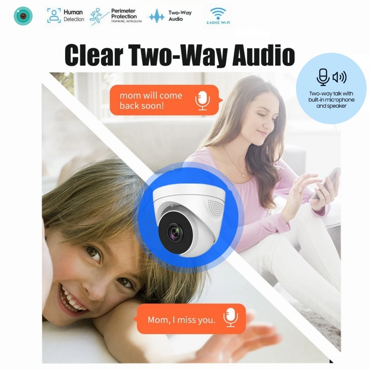 6)Support two way audio(Built-in Mic and Speaker) ,you can listen and talk with guests even you are not at home through this security camera!