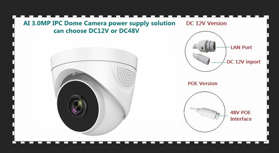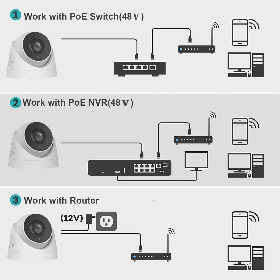 3.IP Camera default power supply is 12V; POE 48V power supply needs to be matched with your POE switch 48V