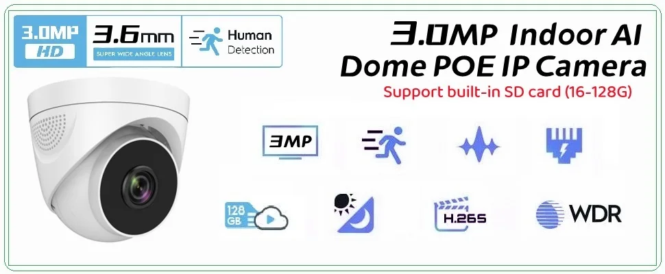 3.0MP AI Security Camera 3MP dome Indoor IP Camera Supports Two-way Talk, Home Video Surveillance System with IR Night Vision, 3.6mm Lens