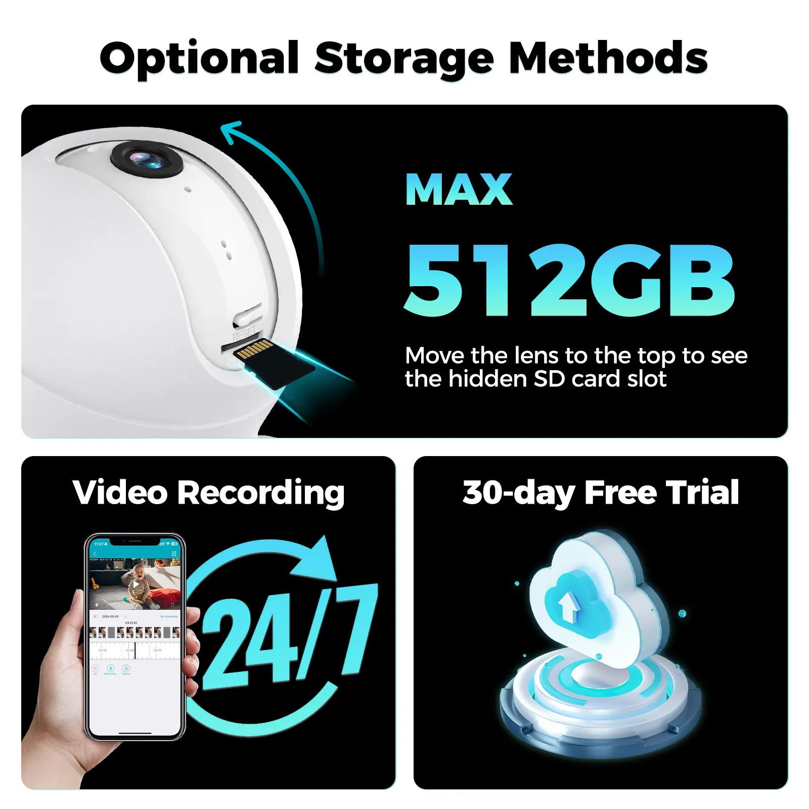 Financial encryption video storage technology enables the security camera to keep a private recording in the Vimtag cloud, meanwhile you can choose an Micro SD card (up to 512GB) to avoid any possible risks, managing 24/7 absolute protection for your pets/baby and family.