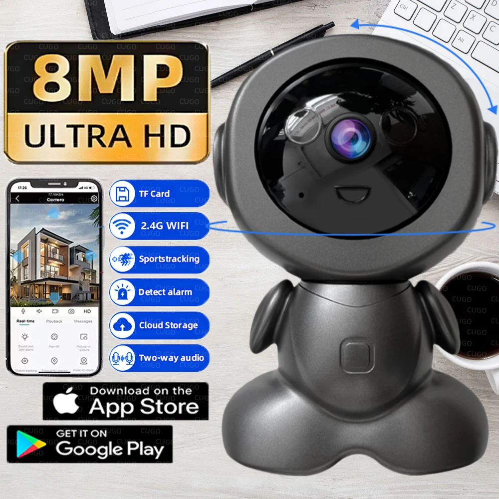 Caméra Robot WiFi sans fil 8MP, sécurité intérieure, moniteu