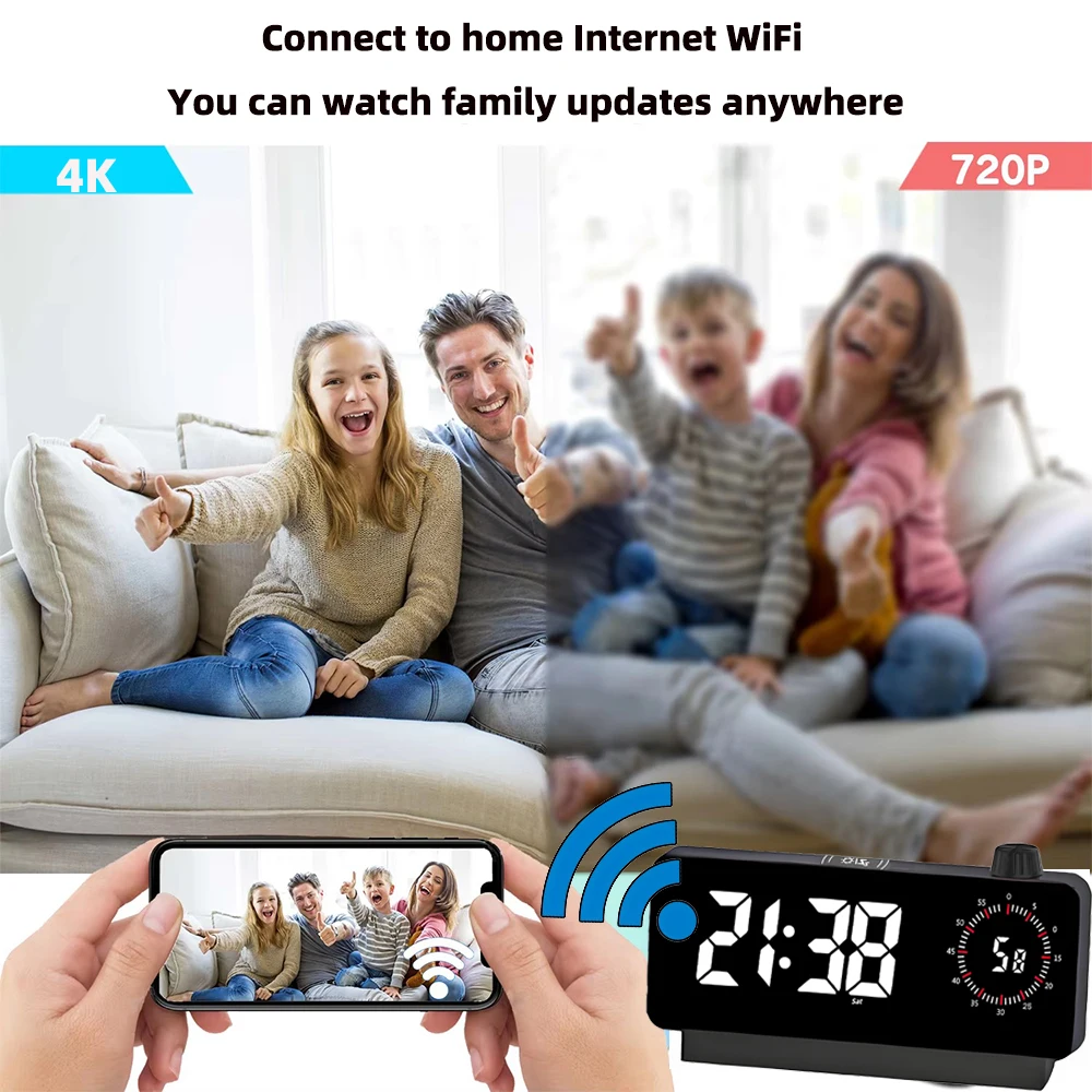 Mini caméra d'horloge WiFi 4K HD, prend en charge la visualisation à distance, la détection Mob