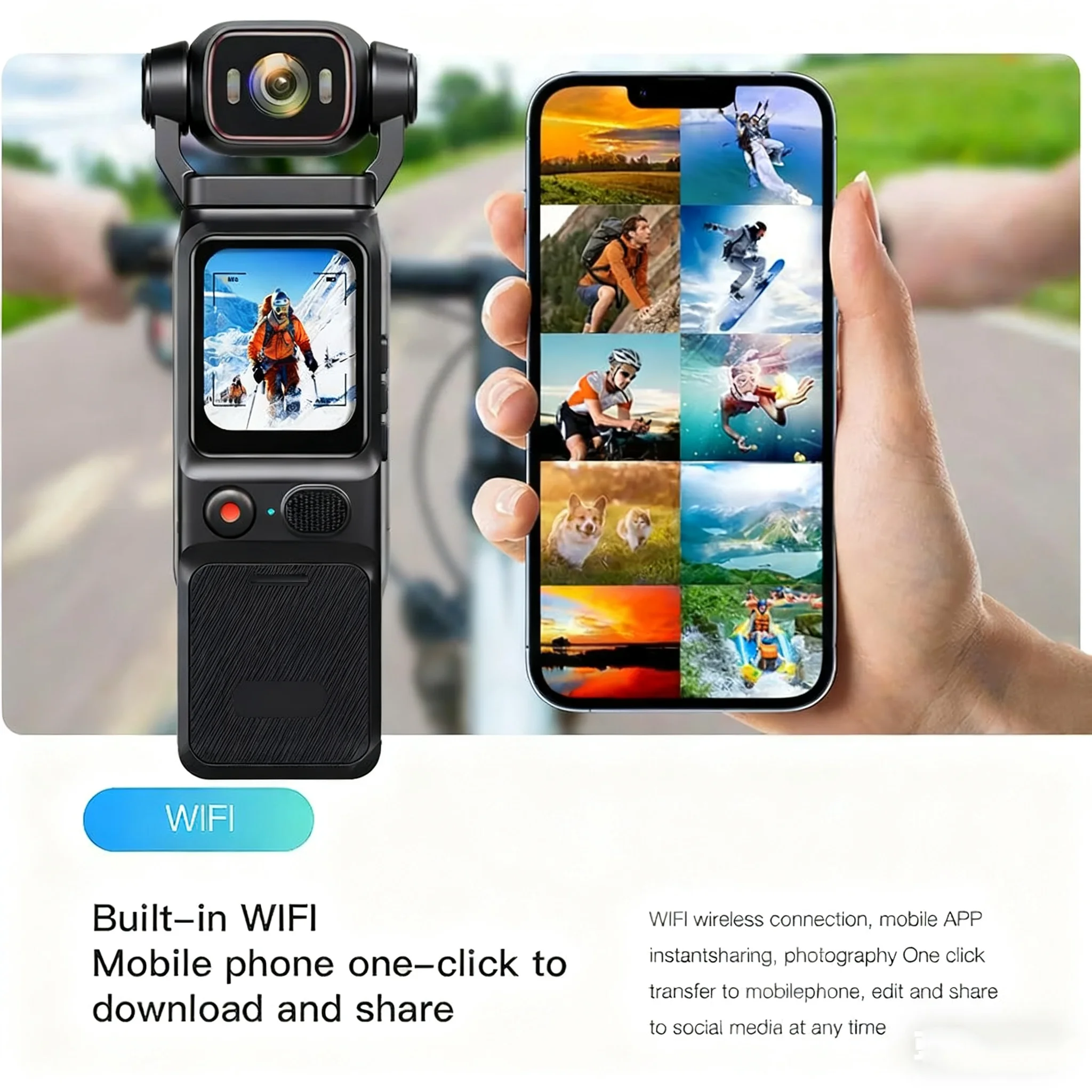 Caméra de poche à écran tactile 4K WIFI extérieure DV 180 ° Stabilisation rotative Sport BodyCam P...