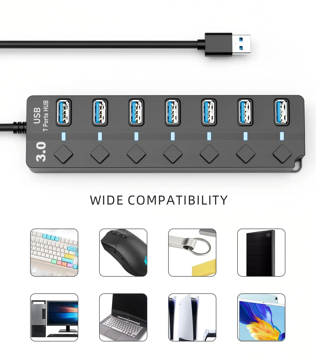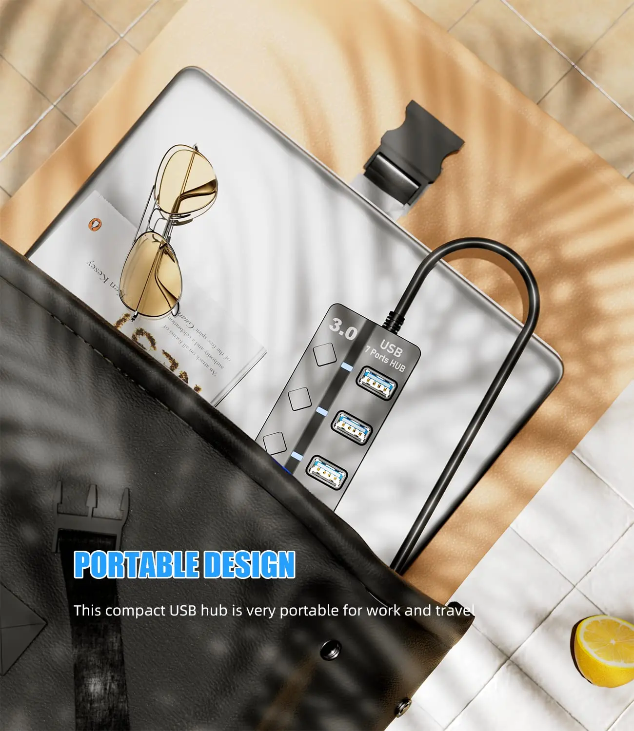Répartiteur Multi USB Hub USB 3.0 haute vitesse, 4 7 Ports, avec commande de commutateur, pour Xiaom...