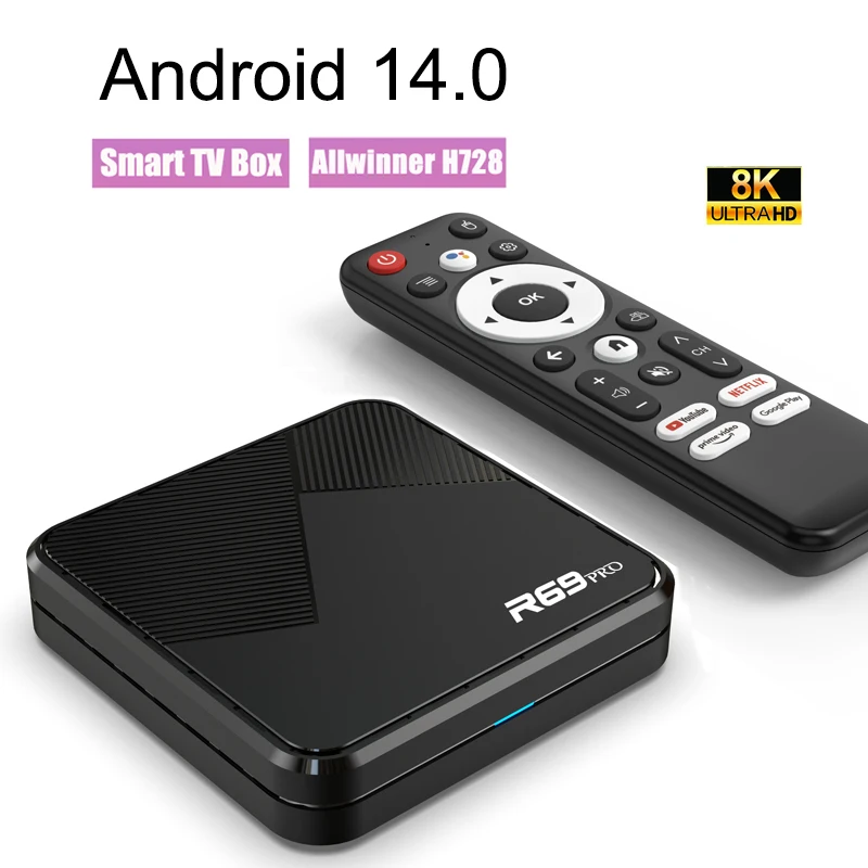 TV Box R69 PRO Android 14 8K Wifi6 Allwinner H728 lecteur mu