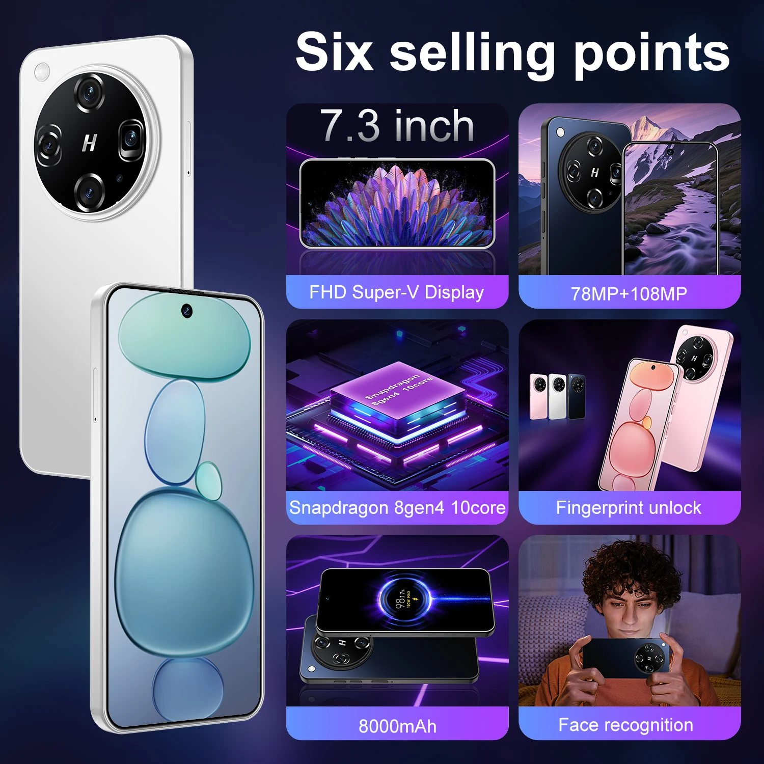 Téléphone M15 Ultra, écran de trou de perforation dans le ce