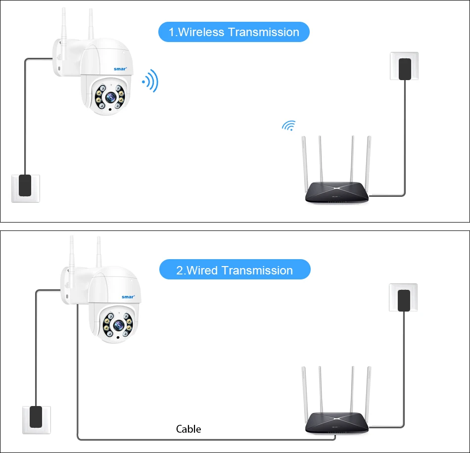 You could select the convenient connection as you want . Sometimes you might just have one way to connect the camera , don't worry , this camera supports wireless and wire connection at the same time.