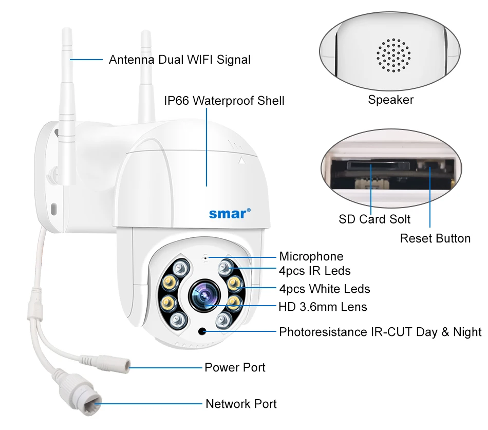 Smar-Caméra de surveillance extérieure PTZ WiFi 4K HD 5MP/1080p, dispositif de sécurité domestique s
