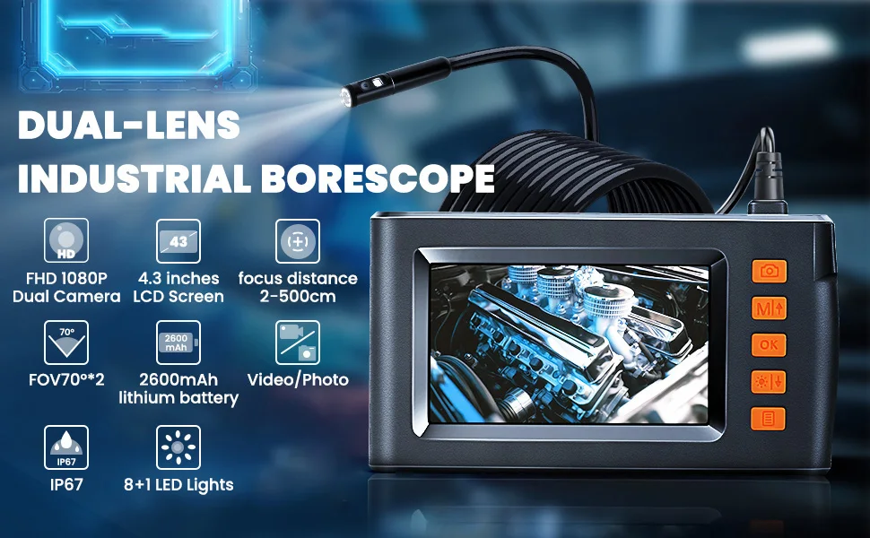 4. Dual lens borescope, wider field of view, clearer side picture quality .