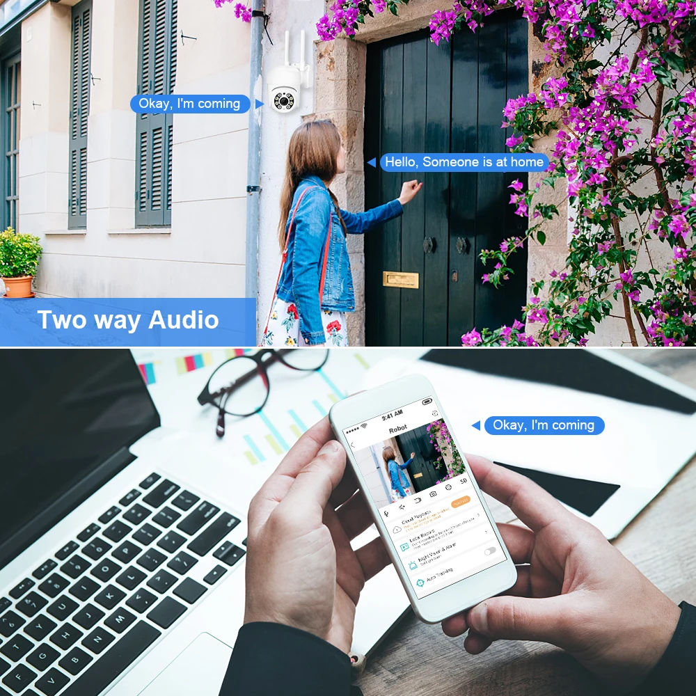 Caméra de surveillance extérieure PTZ IP Wifi hd 5MP/1080P,