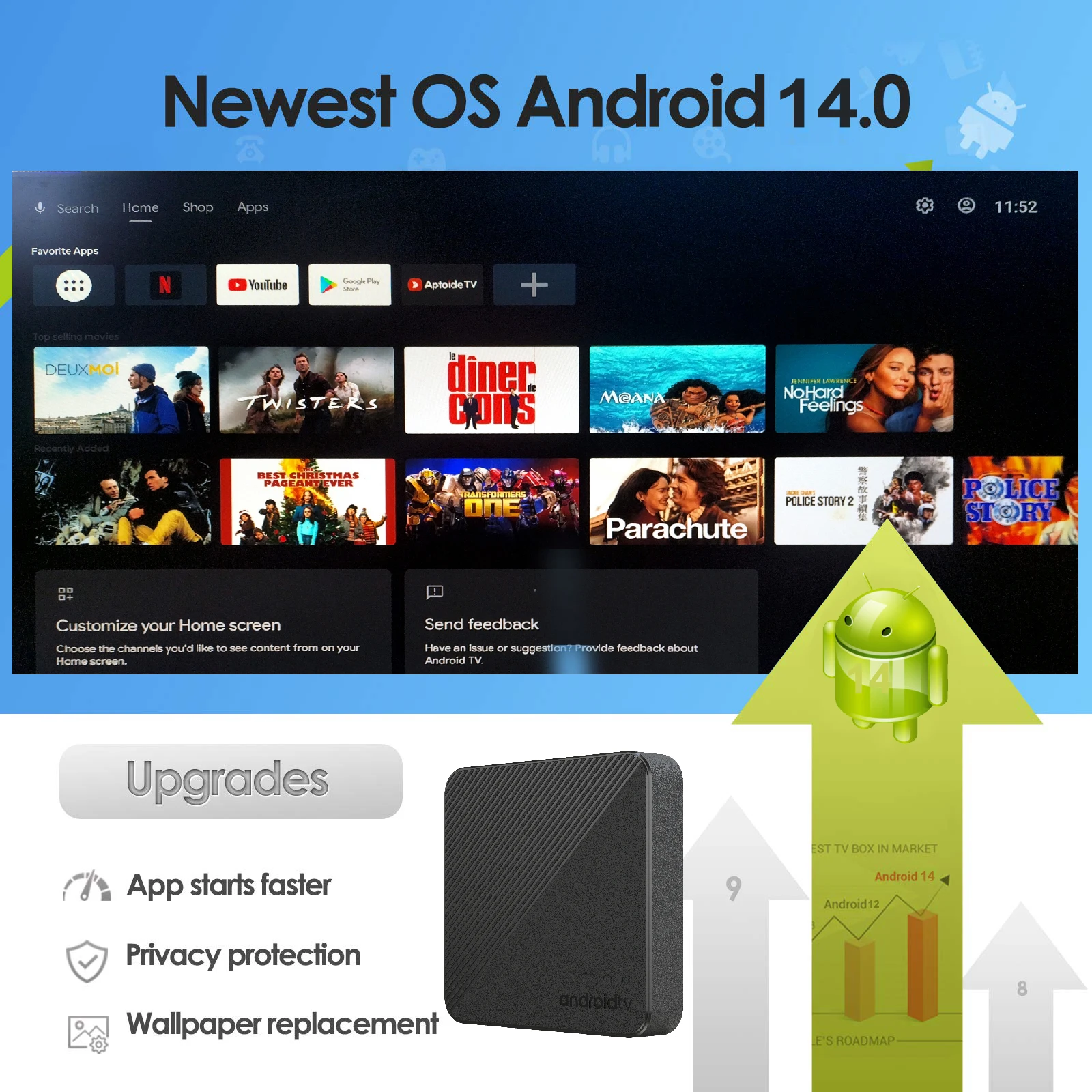 Wifi6 inteligente T1S TV Box Android14 Allwinner H313 Chip Quad -core 1000M Lan Bluetooth 5.0 Chromecast Streaming Media Player with Google Voice Assistant