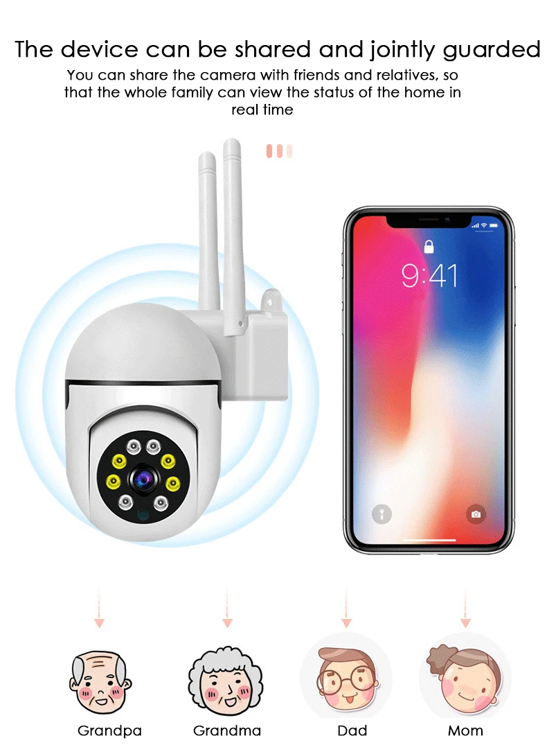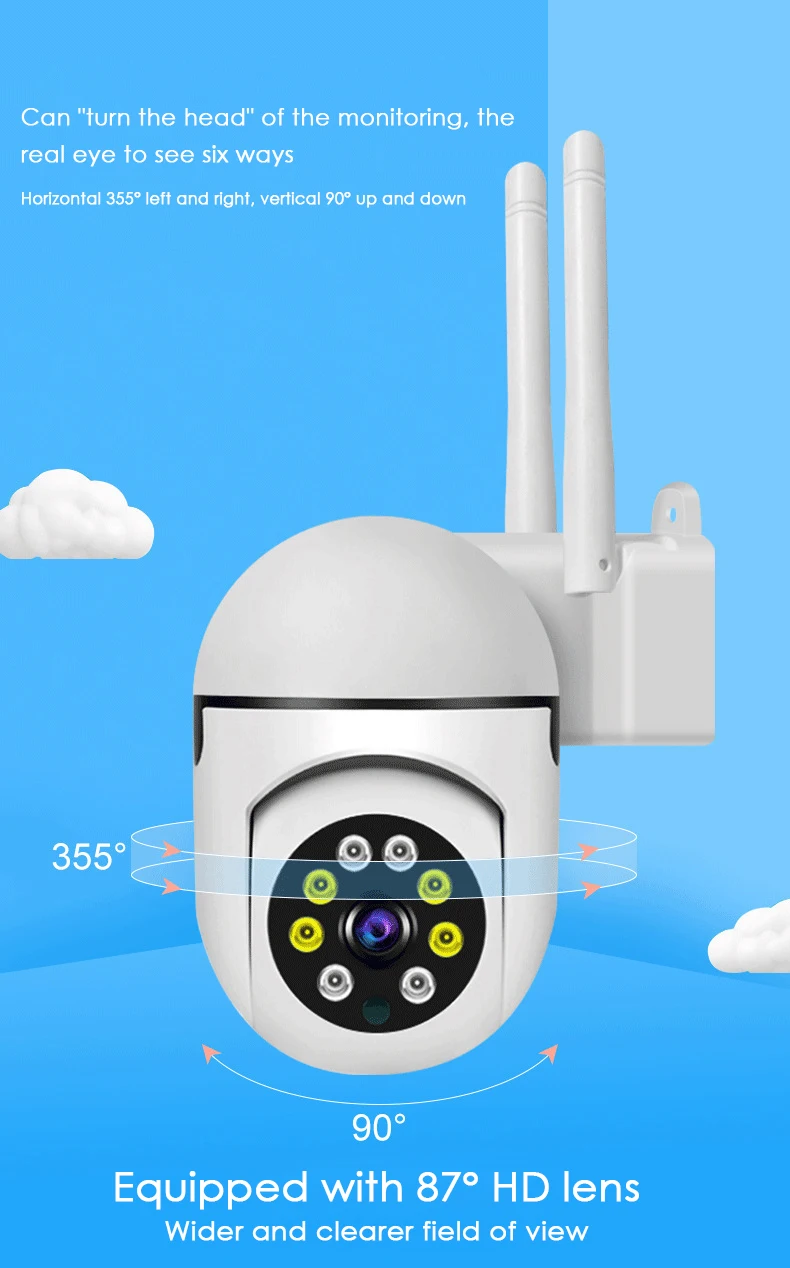 Ycc365 Plus-Caméra de surveillance PTZ IP WiFi HD 1080p, dispositif de sécurité sans fil, étanche, avec audio et n'aime x4, enregistrement intégral des documents, codec H.264"