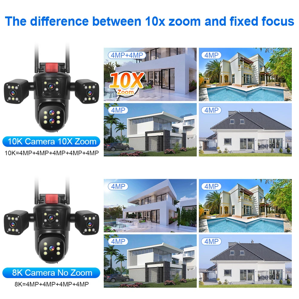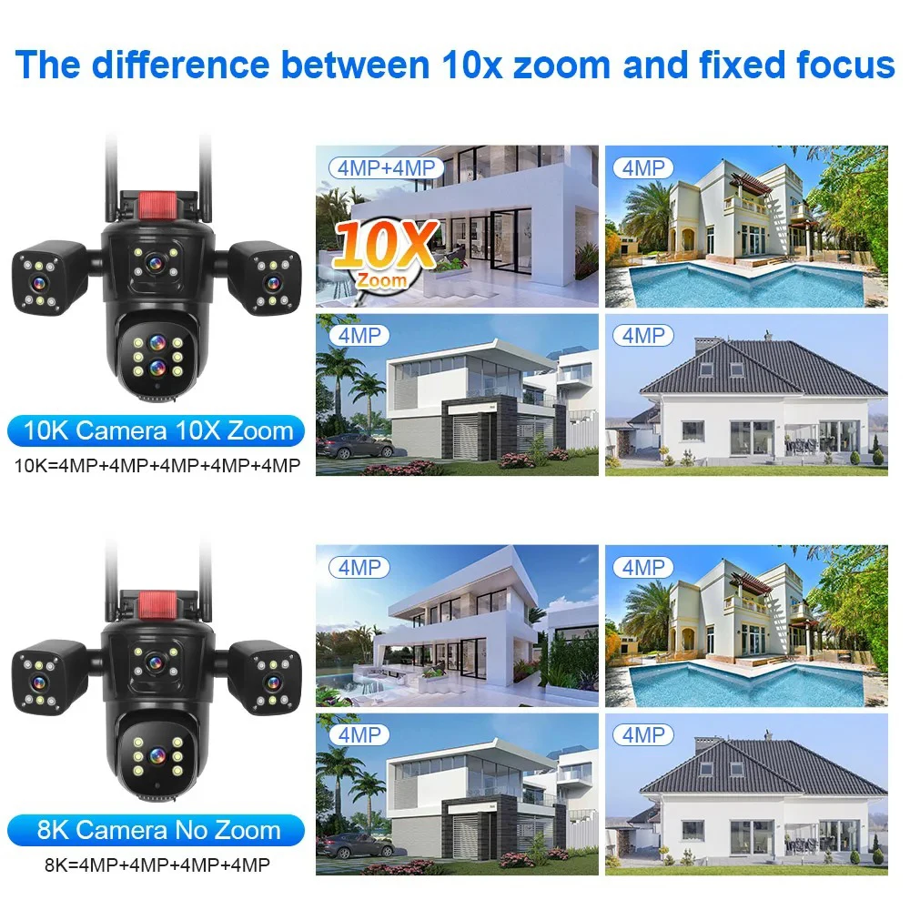 * 10K camera supports Three screen real-time monitoring. 360 ° without dead corners, allowing you to see more details,10X optical Zoom.