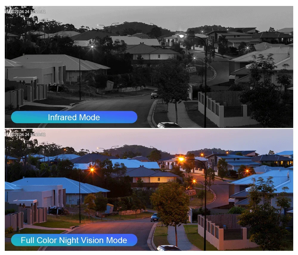4. Dual light source design, built-in infrared light + white light, night vision infrared and night vision full color can be set