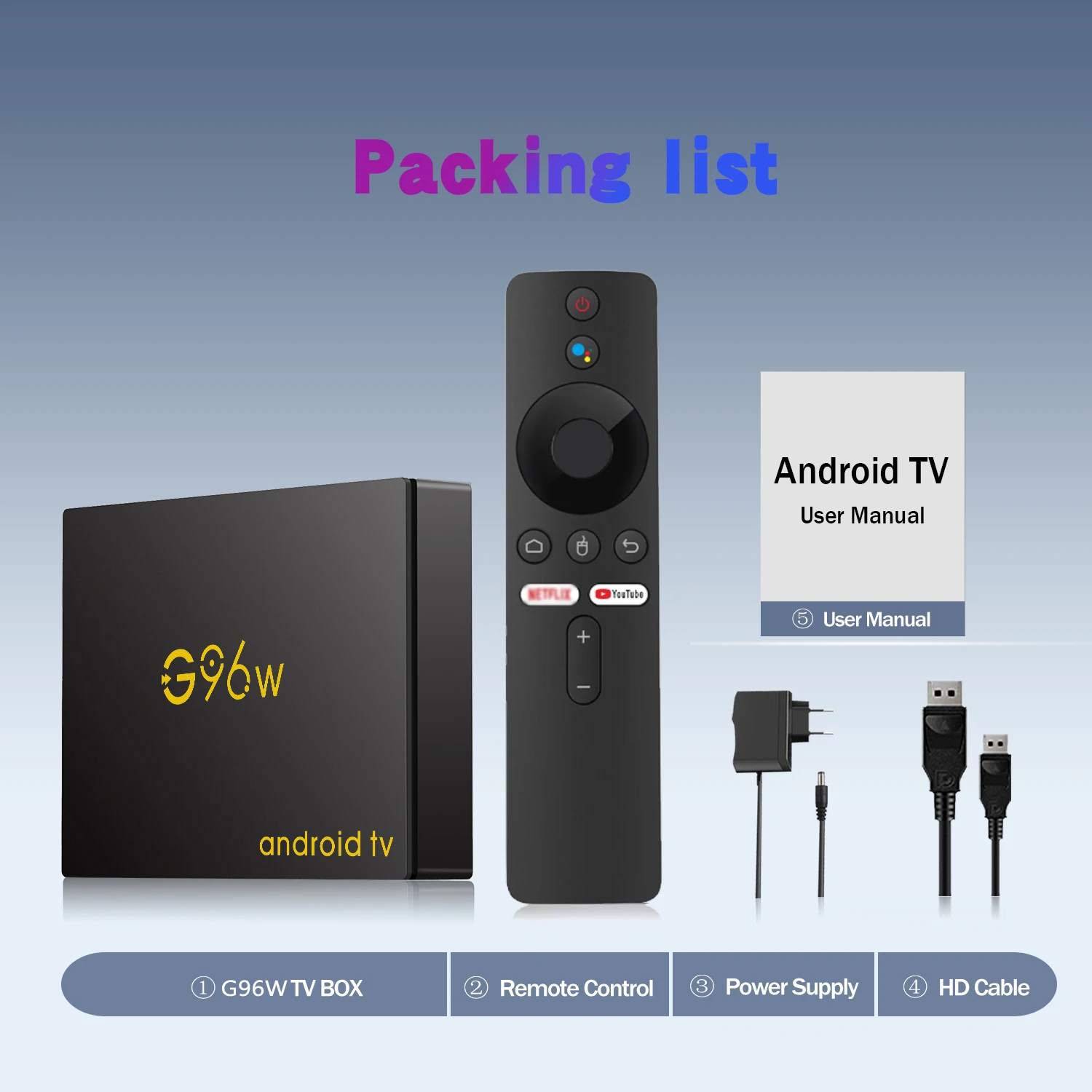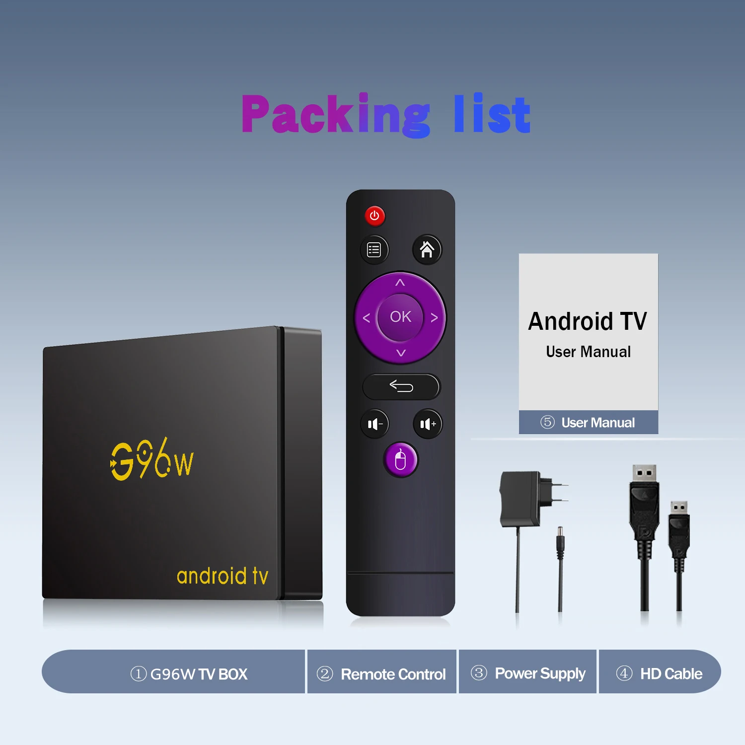 1.G96w TV BOX( with Infrared remote control)