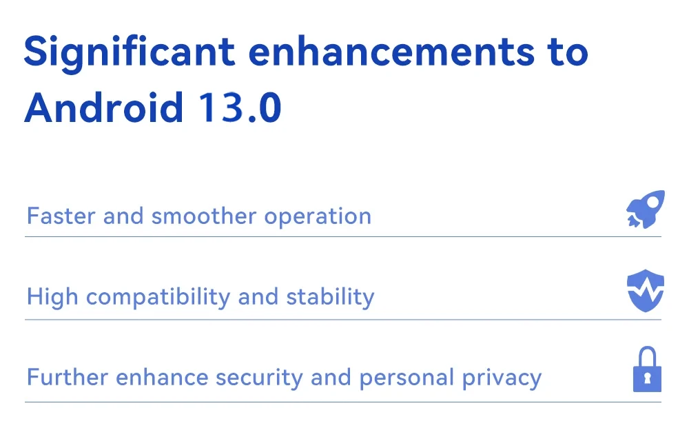 Android13.0Latest system, enhanced protection of user privacy.
