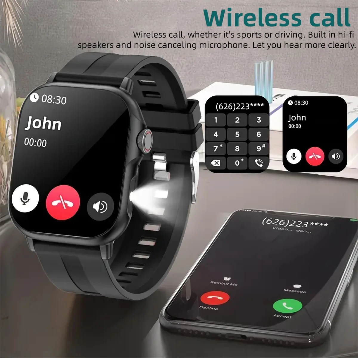 🌐Smart Features: Bluetooth calling, incoming call reminder, message reminder, alarm clock, raise hand to light screen.