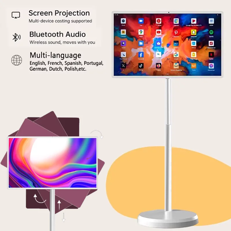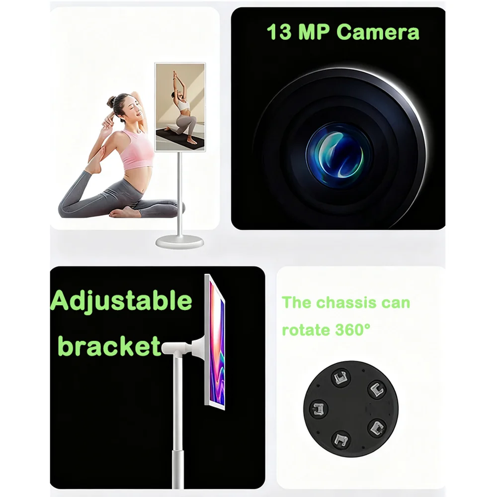MZXM-6G+128GB Go 21,5 pouces TV intelligente portable 60Hz 1080P écran tactile hauteur réglable Android TV caméra 13MP batterie 12V 8000mAh support mobile, adaptée aux salles de yoga, aux salles de sport