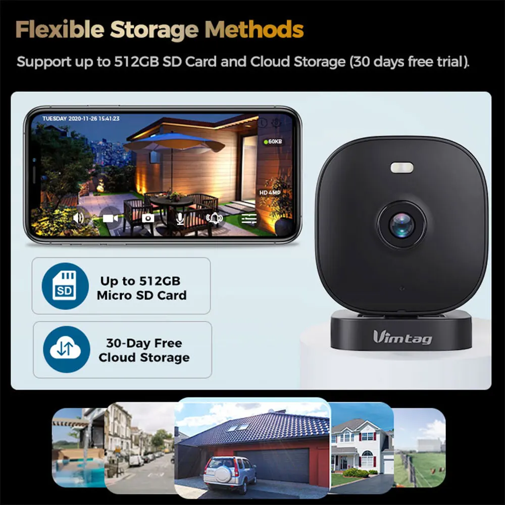 VIMTAG 4MP mini caméra extérieur wifi,Lumière intelligente PIR,IP66 étanche ,vision nocturne Couleur 10M,camera de surveillance maison,CCTV camera de sécurité interieur ,détection IA, fonctionne avec Alexa