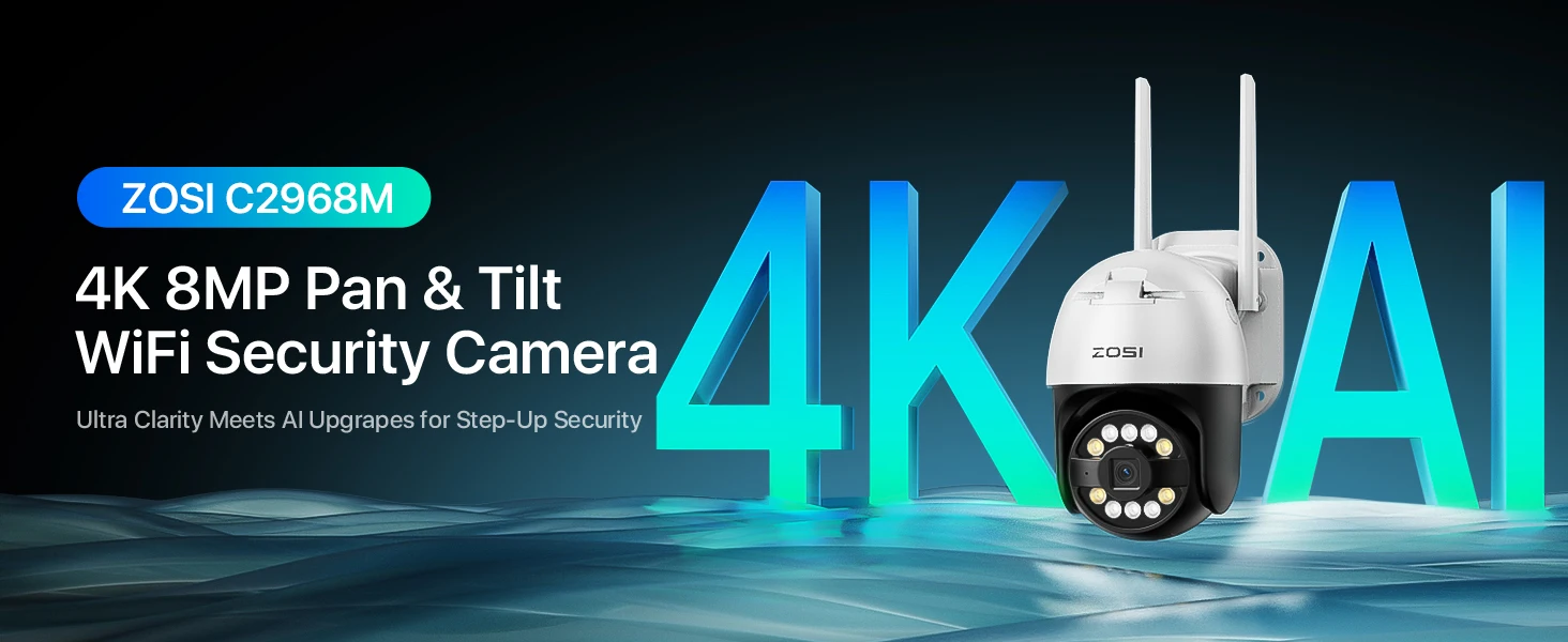 ZOSI-Caméra de surveillance intelligente PTZ WiFi 4K 8MP, dispositif de sécurité domestique sans fil