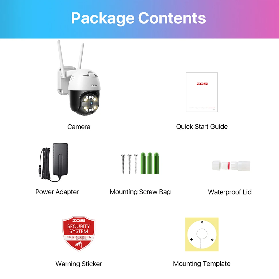 ZOSI 8MP PTZ WiFi Security Camera, Auto Tracking, Warning Light & Siren, Person/Vehicle/Pet/Package Detection, Work with Alexa, C296