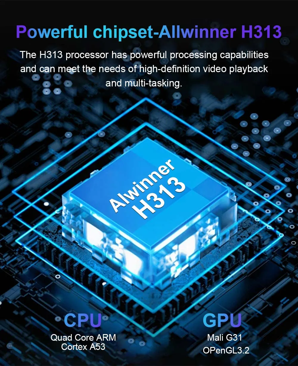 【4GB RAM+32GB ROM】:T1S Smart TV Box uses Allwinner quad-core cortex-a53 CPU, 2GB RAM+16GB ROM excellent storage space, you can download more movies, games.