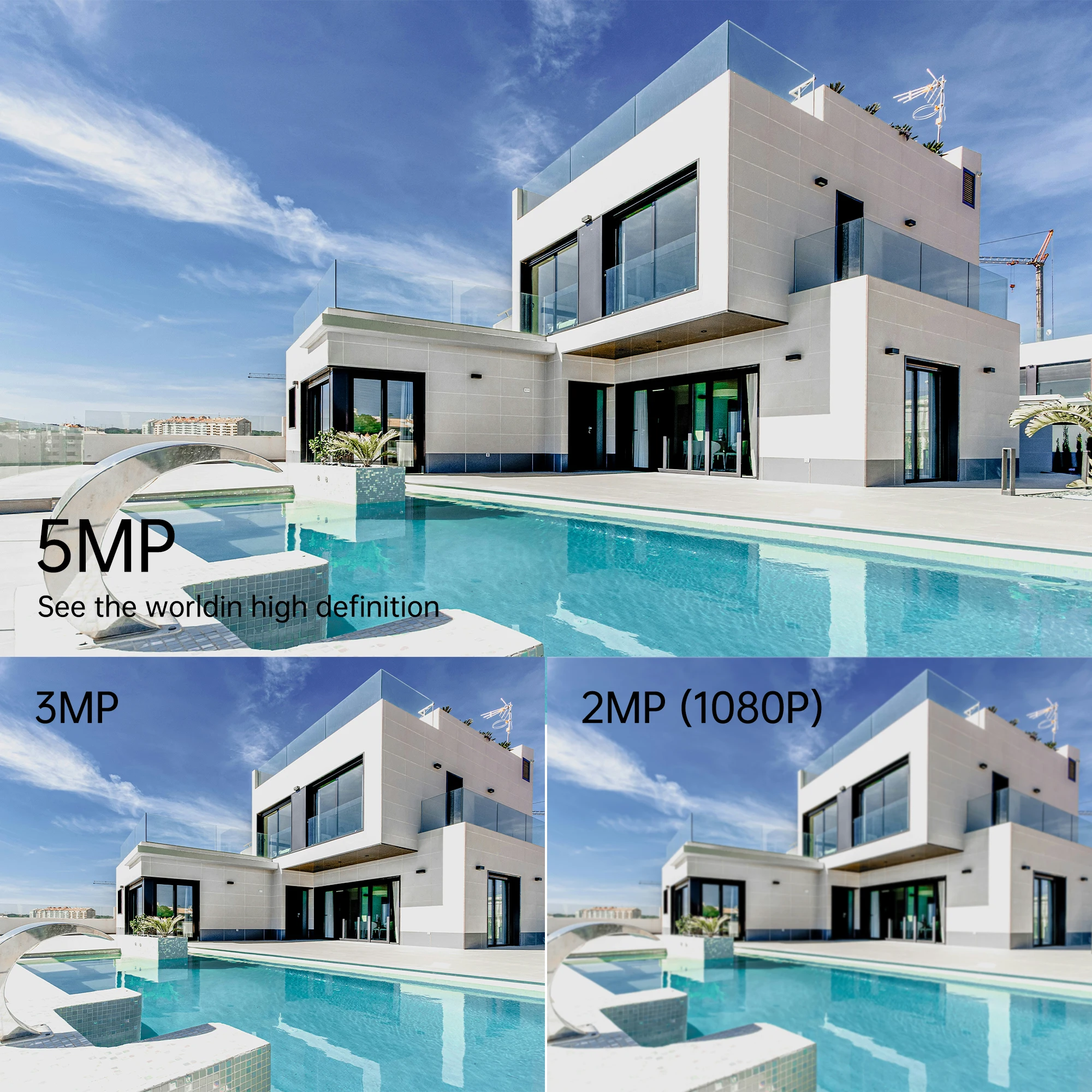 Having a high resolution of 2560x1920(5 million pixels)and real 1080p full HD to choose, your IP surveillance outdoor camera can support long-distance night vision in the dark, it is very suitable for parking lots, garages, backyards, front yards and other large areas.