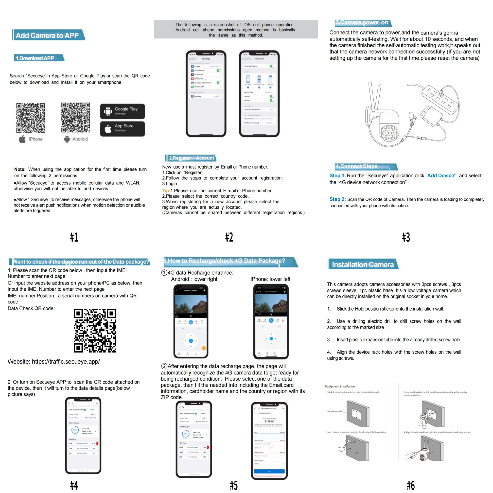 1.This security surveillance camera has a 4g built-in card inside already,pls recharge 4g data via “secueye”app directly.