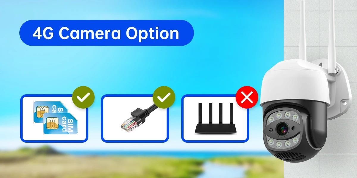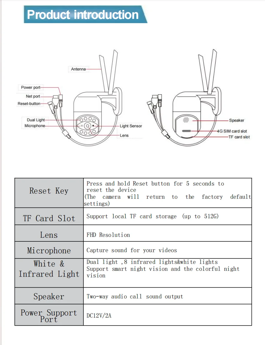 Attention:Our 4g version camera works with built-in card and your local 4g sim card for optional. It can support internet cable connection