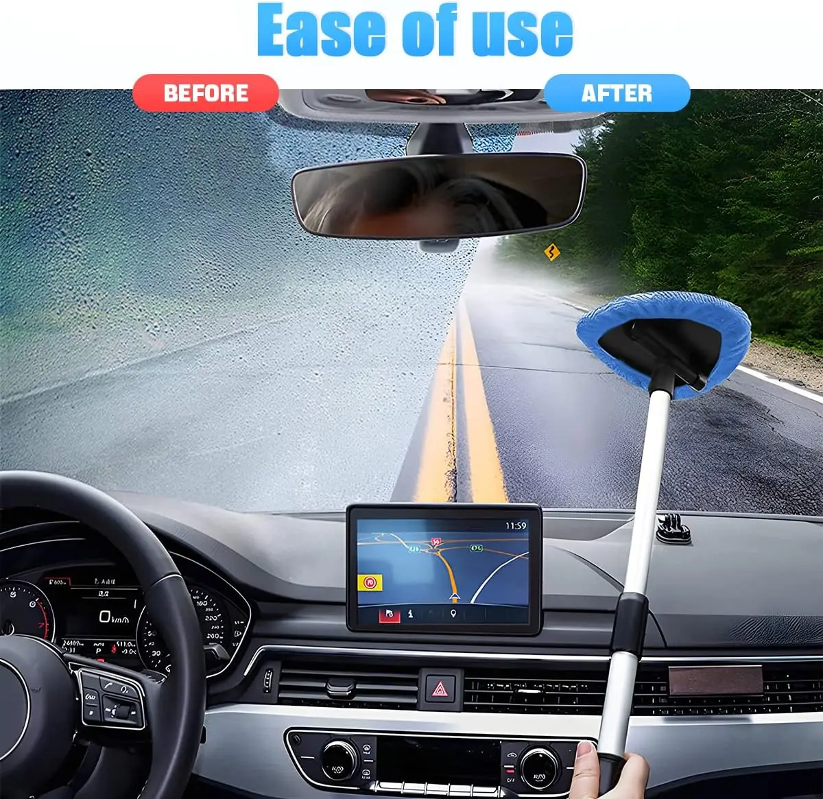 Nom du produit : Outil de nettoyage de pare-brise, nettoyeur de vitres de voiture avec longue poignée extensible et 4 tampons en microfibre lavables et réutilisablesPrix de vente : 14.37 EUR une seul fois