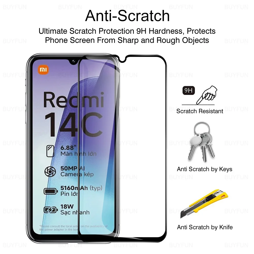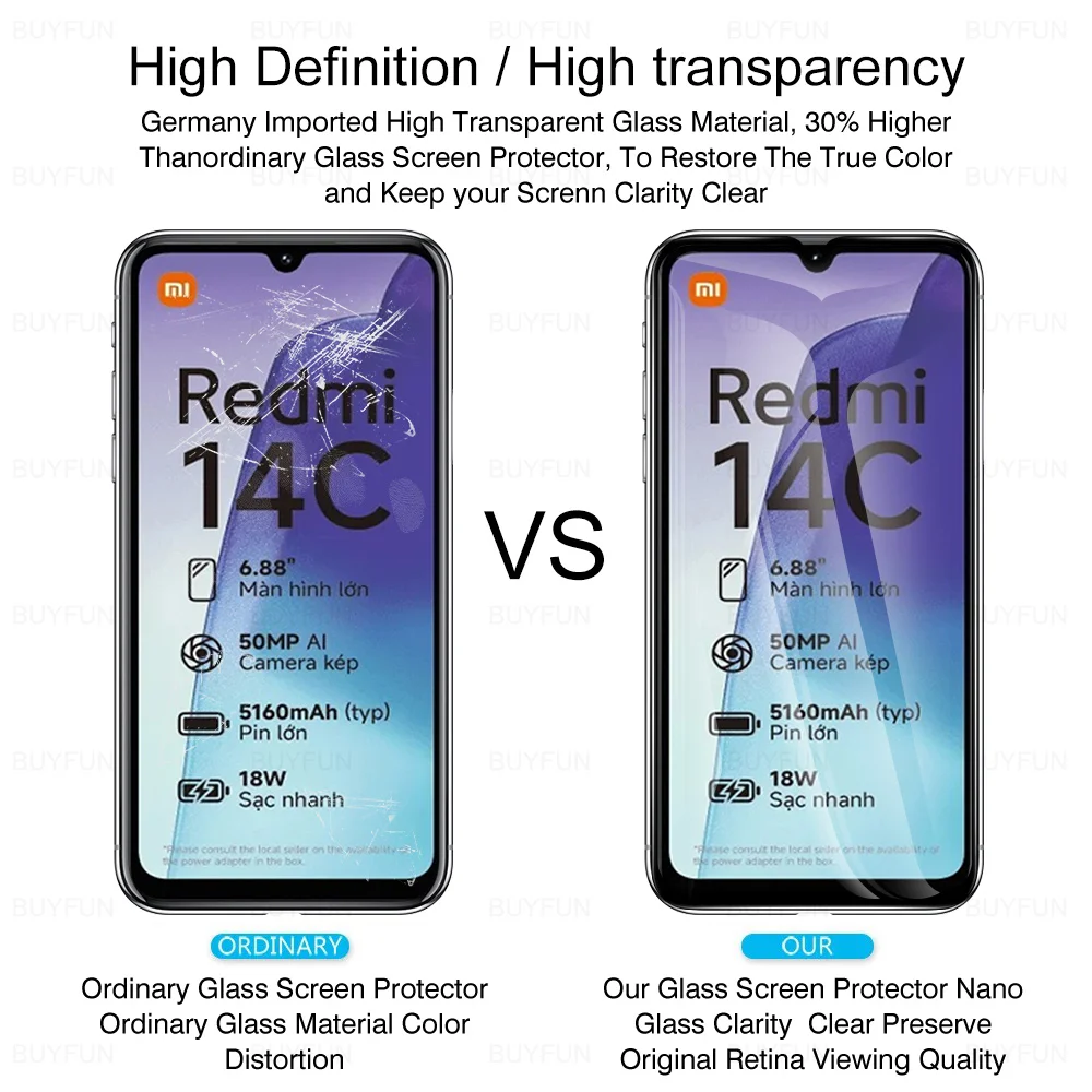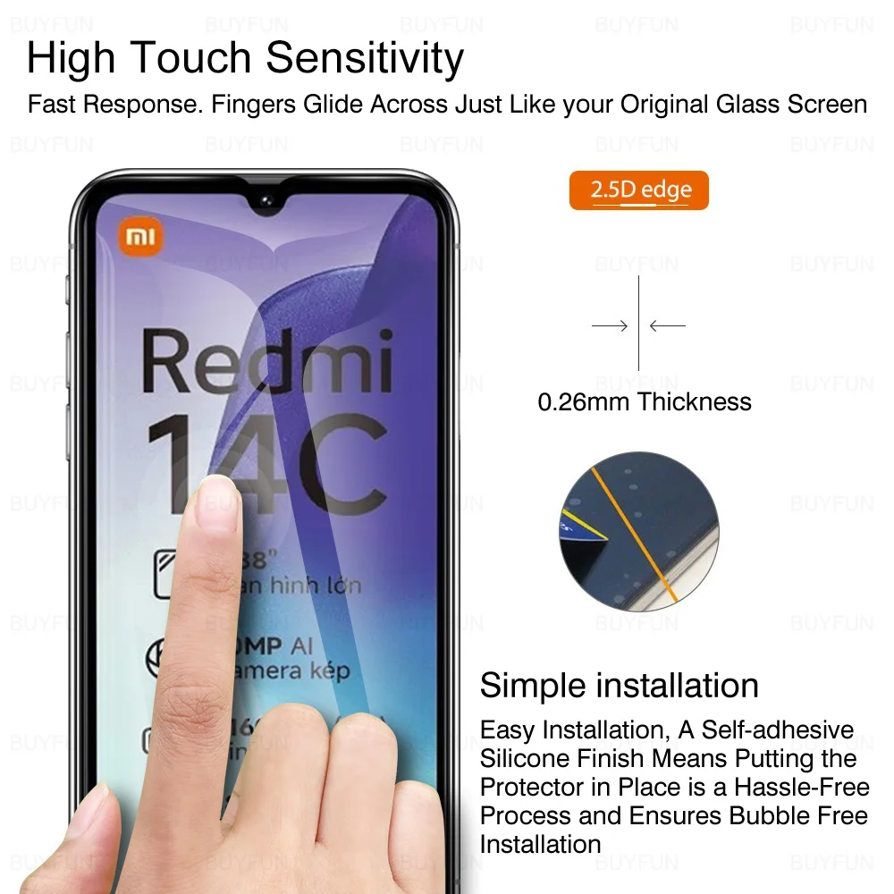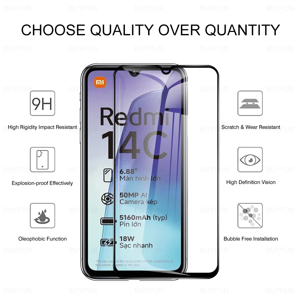 Protecteur d'écran en verre du Guatemala pour Xiaomi, film d'objectif d'appareil photo, bord noir, 6 en 1, Redmi 13C, 14C, 4G