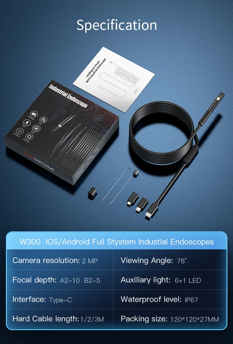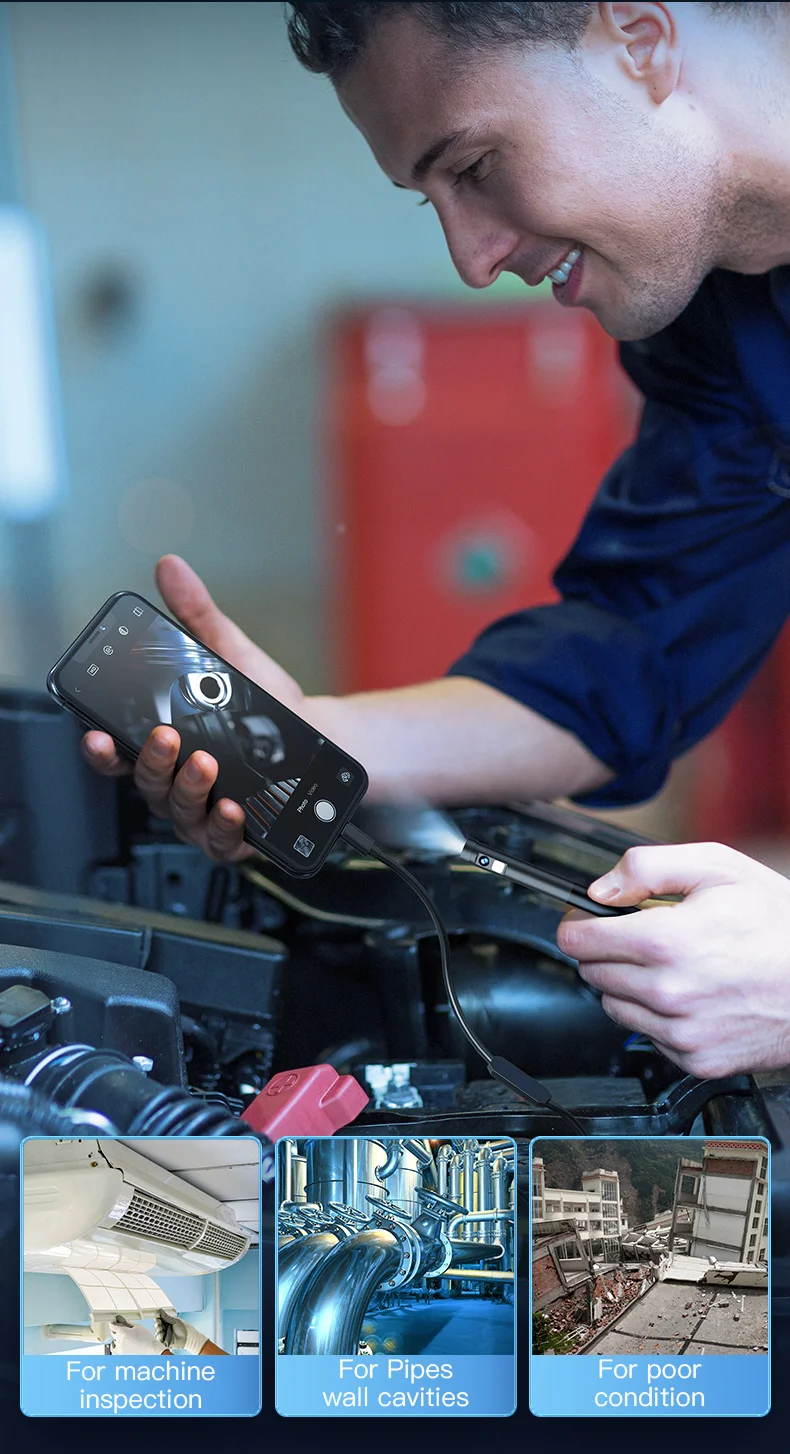 This pipeline inspection borescope comes with a Type-C interface and is equipped with adapters for Micro USB and Lightning, making it compatible with 99% of mobile devices on the market.