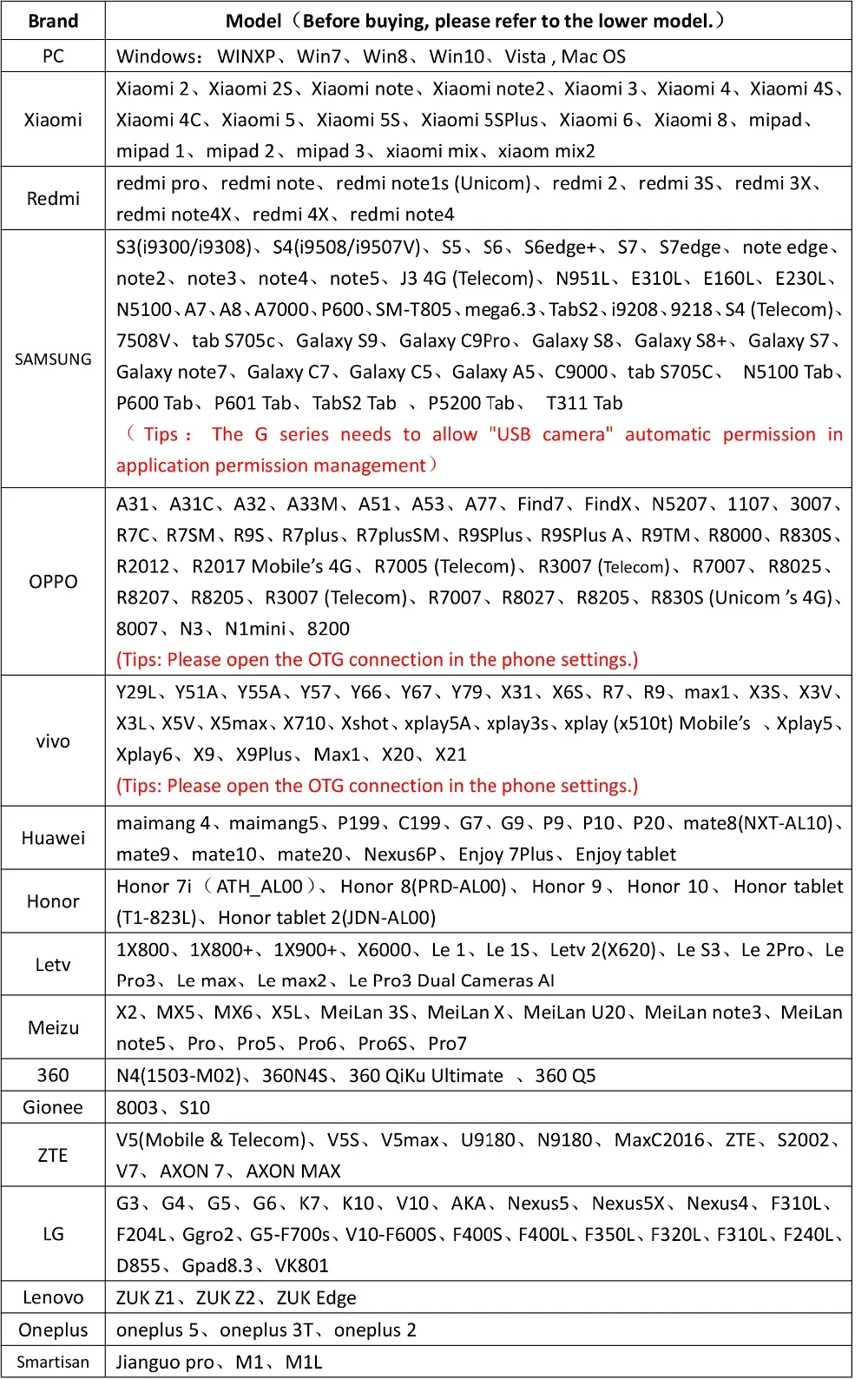 1 . Please Must Check your phone Model Firstly. USB/ Type-C Borescope for Samsung, HTC, Huawei, Sony, Tablet, Macbook. Important note : It is applicable only to the USB C Smartphone with OTG and USB UVC function ,please kindly confirm with your Smartphone supplier before buying.