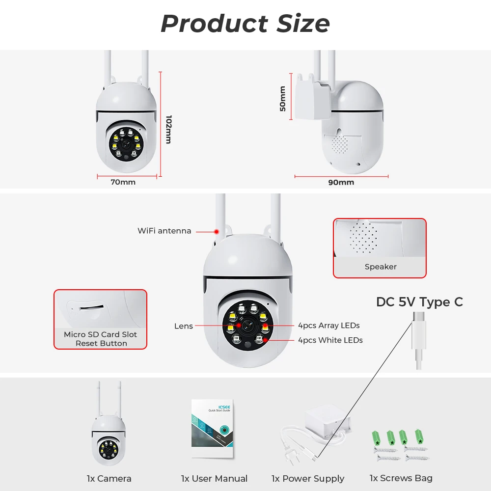 Built-in microphone and speaker / Customized new speakers with loud volume; You could talk to anyone nears the camera ( Warn someone to leave your house ).