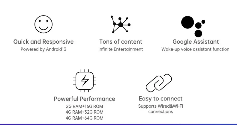 • 8K HD TV Box :Upgrade your TV experience with the 8K HD TV Box, offering stunning clarity and detail for an immersive video watching experience.