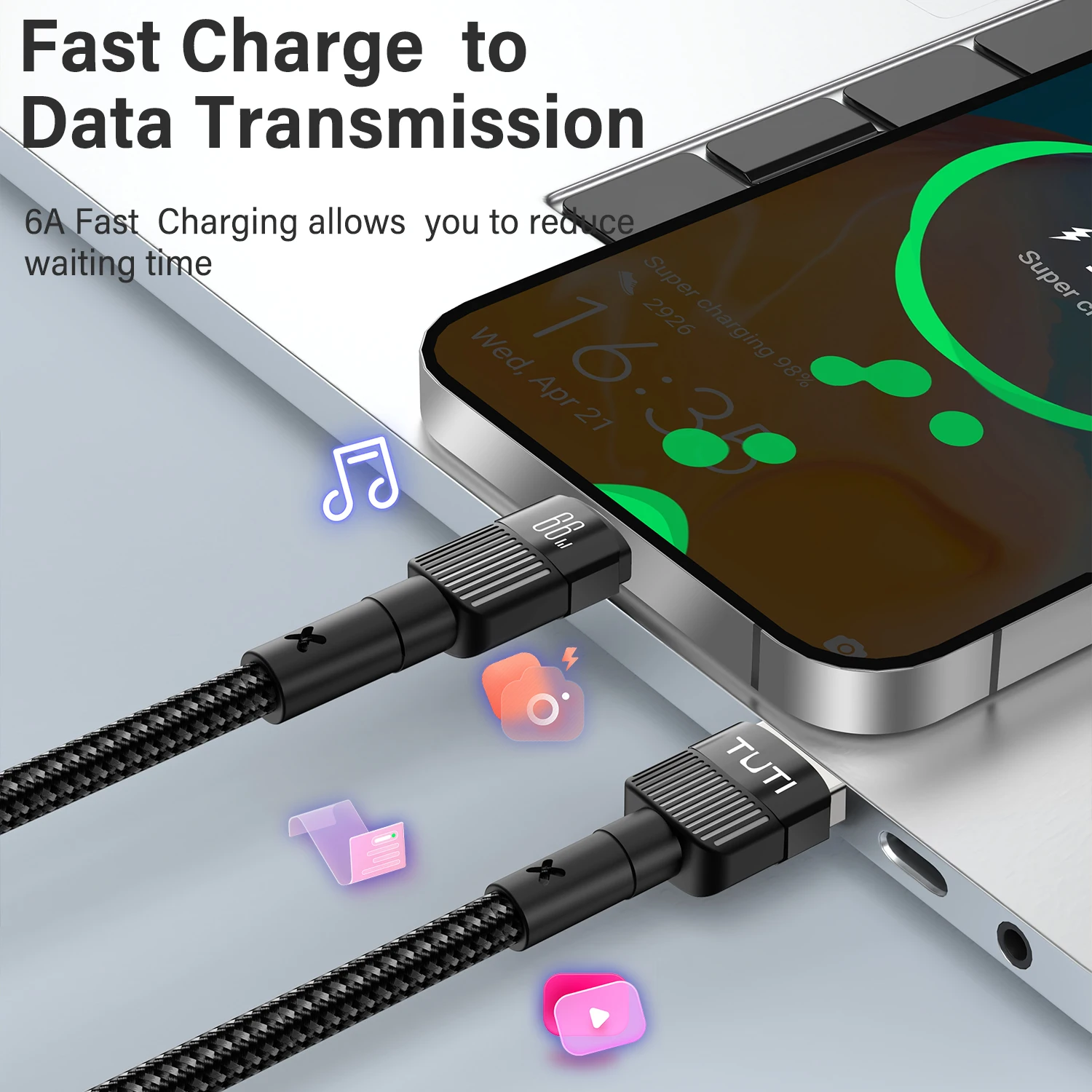 Câble TUTI USB-C 66W (Snap-C) à Développement Rapide, avec Extrémité D.lique, pour Android, iPad, iP