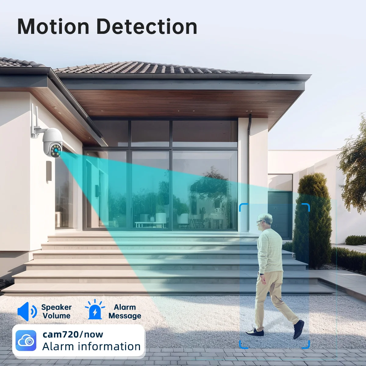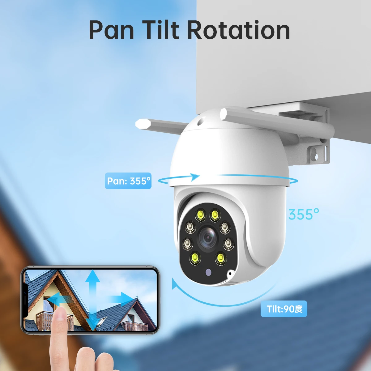 Due to the horizontal 355° and the vertical 90 °, you can remotely control the wifi outdoor camera to view every corner via your mobile phone.Motion Detection&Horizontally Auto Tracking