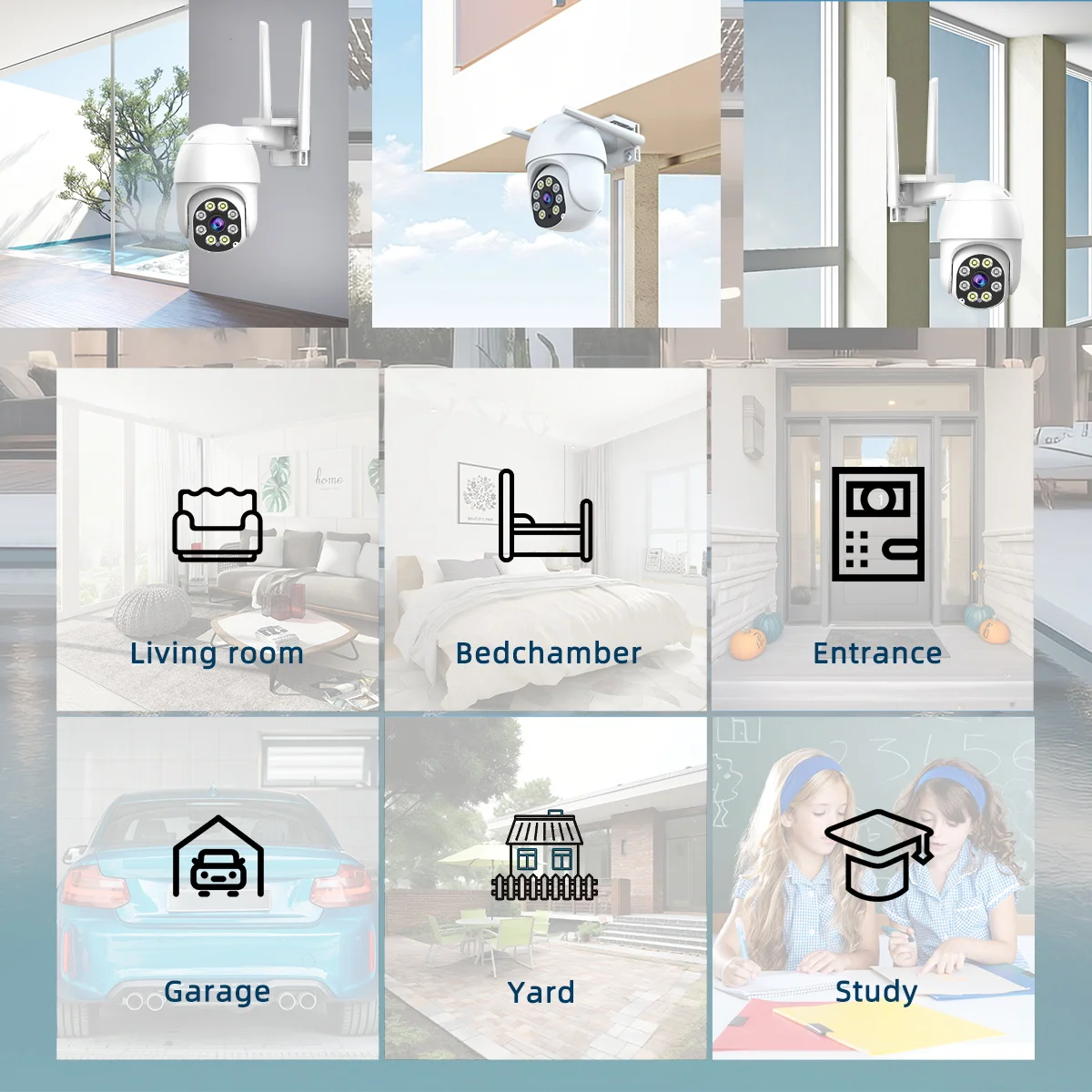 it is easy to install, desk mount, wall or ceiling. there is an installation bracket in the package, so you can install the camera anywhere,like baby monitor,Elderly assistance,office,warehouse,restaurant,store and home security.