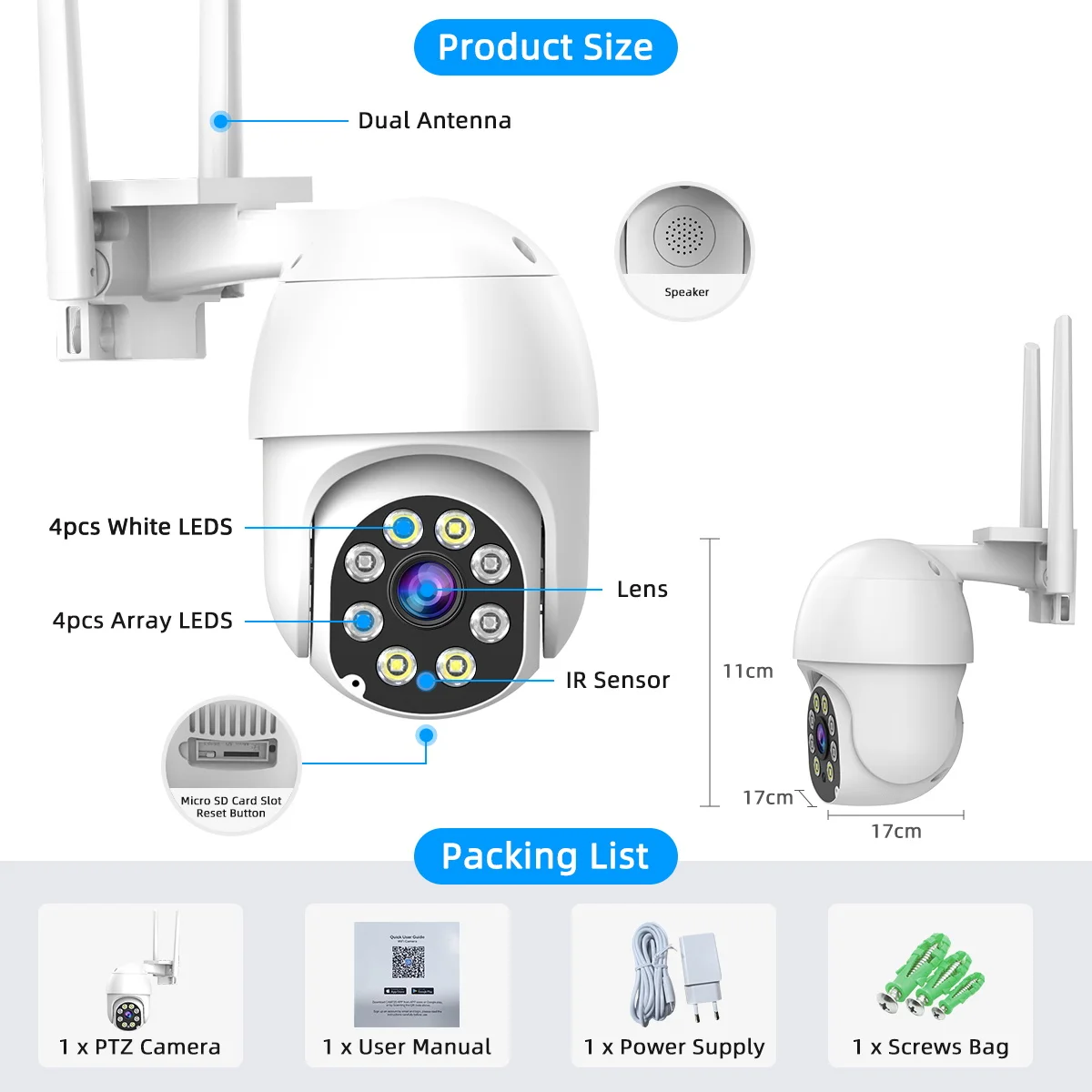 • TF storage &Cloud Storage.Free 30-day cloud storage and Max 128G SD card Record.