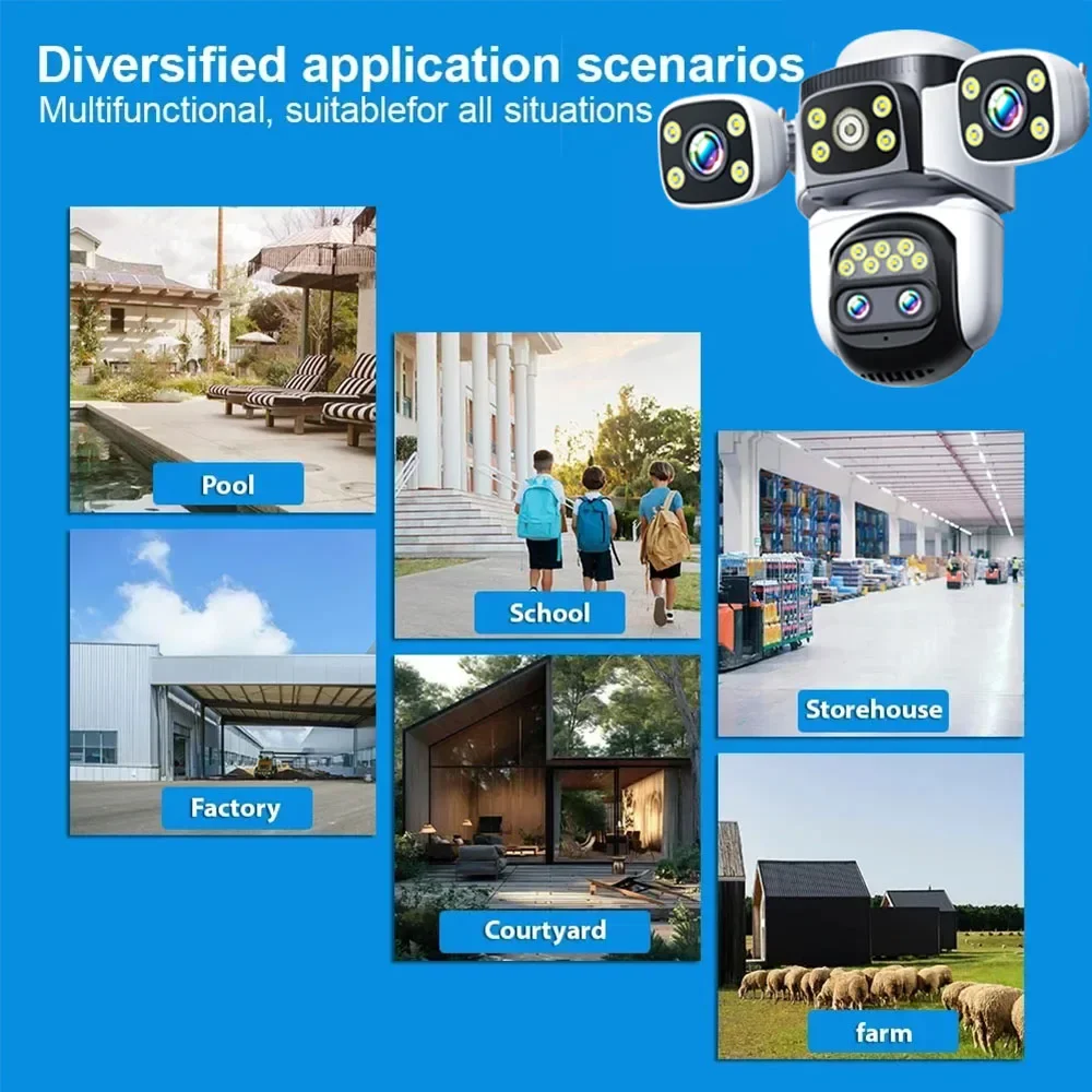 Caméra de surveillance extérieure PTZ IP WiFi HD 20MP/9MP, dispositif de sécurité sans fil, avec 4 l