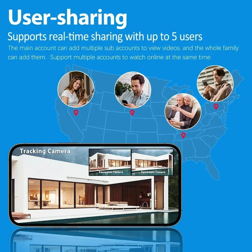 * Surveillance camera supports 5 users to share, you can watch the surveillance image and operate the basic functions at the same time, so your family won't worry anymore!