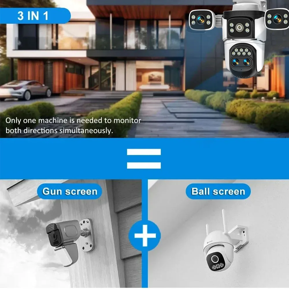 * The lens at the top of the camera is fixed, while the lens at the bottom is rotatable. One camera can monitor two images at the same time, one camera is equivalent to two conventional cameras