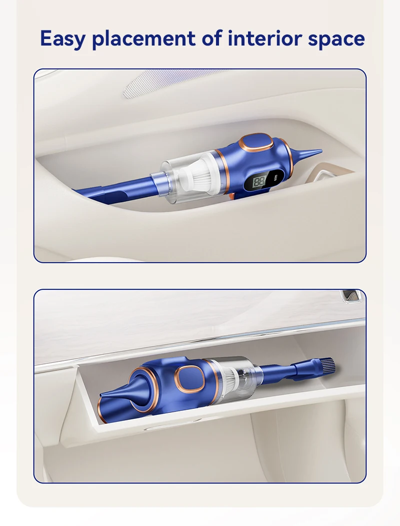 【Long Battery Life and Fast Charging】Using multiple 2000mAh lithium-ion batteries and fast charging technology, the battery life can be extended by about 60 minutes after being fully charged. Our fast charging technology includes lithium-ion battery surge protection to ensure safe operation. LED lights on cordless car vacuums are great for lighting up those dark, hard-to-see places.