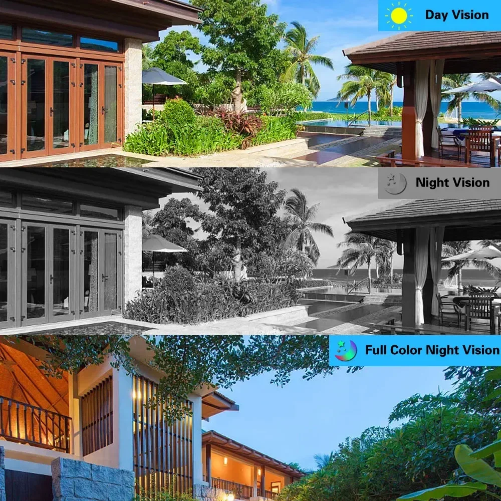 When the white LED light is on, the camera will display colorful vision at night, and there are three night modes for you to choose.