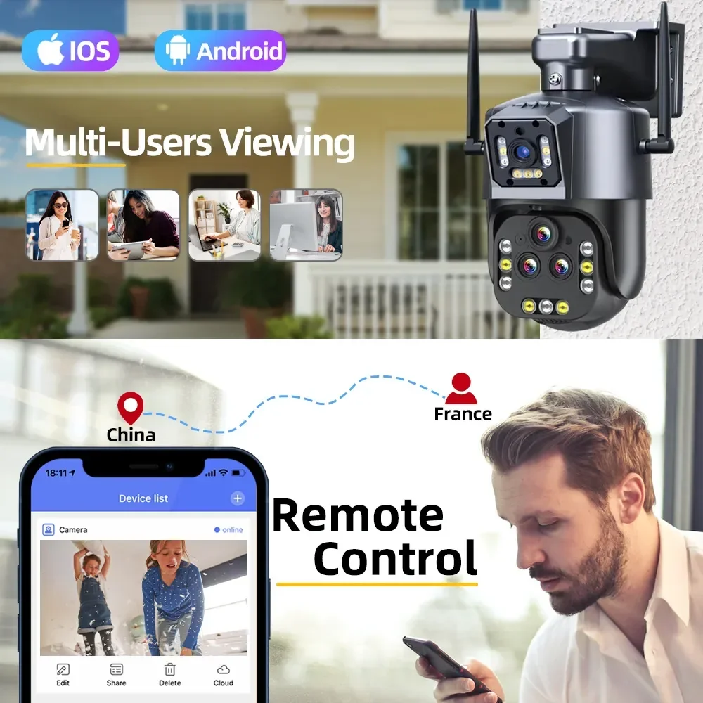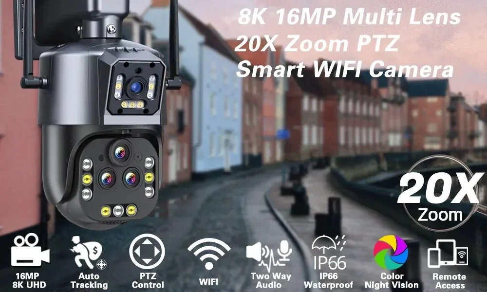 8K 16MP WiFi IP Camera Outdoor PTZ Multi Lens Dual Screens 20X Zoom Auto Tracking Human Waterproof Security CCTV Cam 8MP IPC360