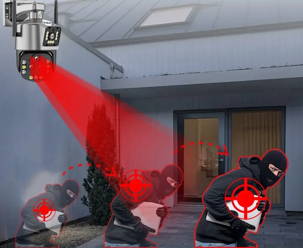 When someone passes through the alarm area, the camera will detect the person's movement. And track people.
